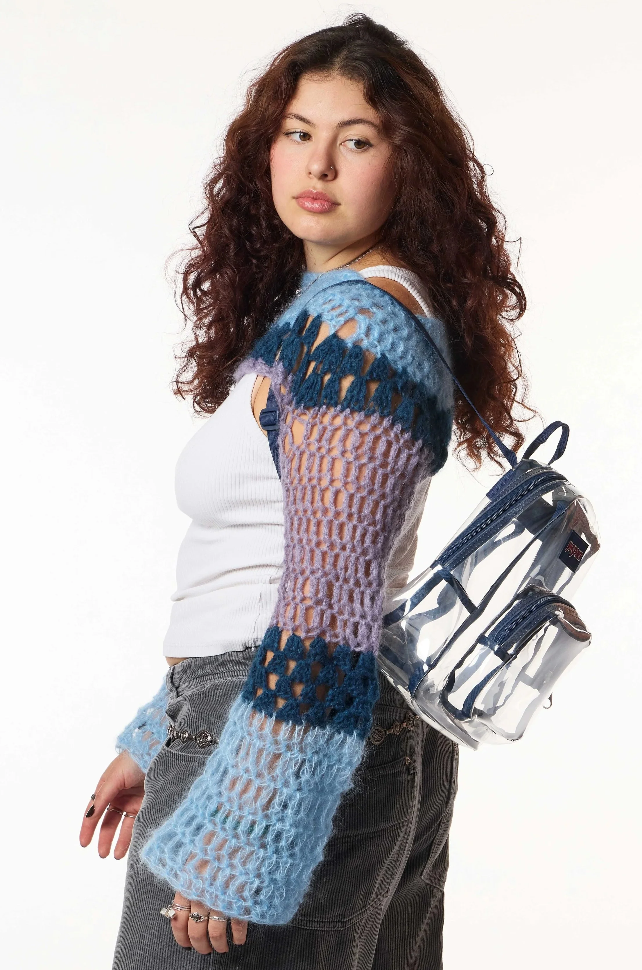Lots of styling, model feels authentic and relevant. We experiment with lots of posing options, have the models interact with the bags in a way that feels natural. Lighting is harder than the previous which gives an elevated overall feel.